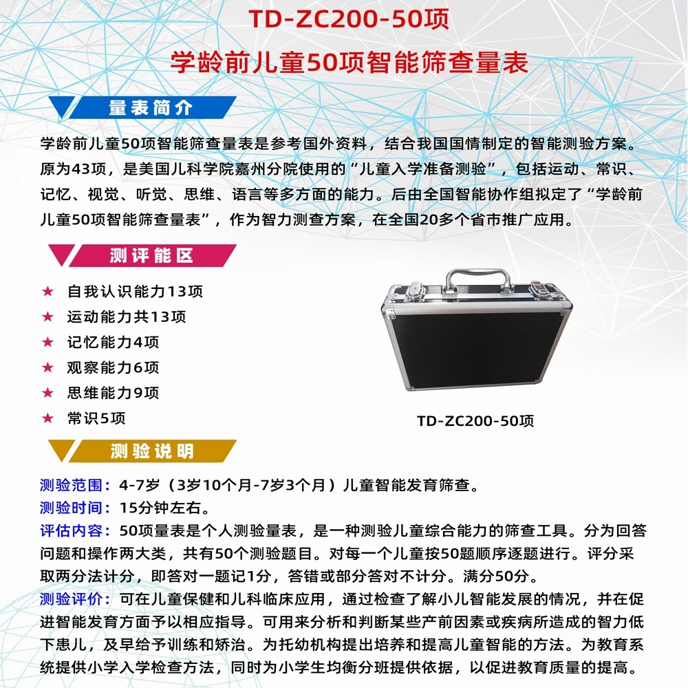 TD-ZC200-50項(xiàng) 兒童智力測試工具箱